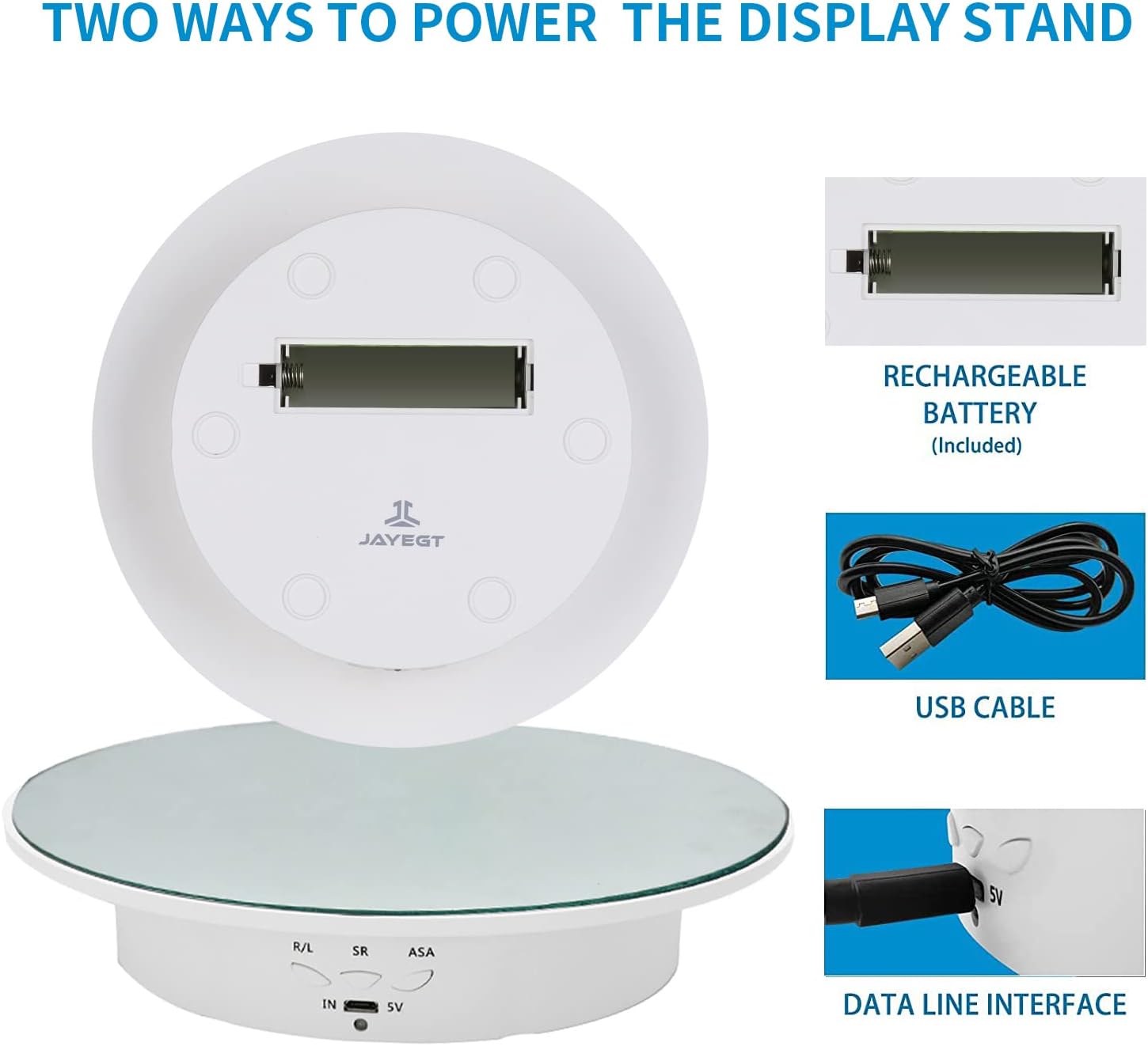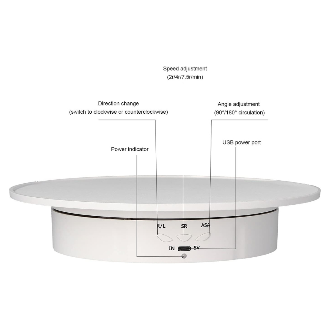 - Multiple Power Options: Enjoy flexibility with various power sources including USB cable, power bank, and battery compatibility (AAA or 18650, depending on model), enhancing portability for on-location use.Revolutionize your product display and capture attention like never before. Invest in the Motorized Rotating Display Stand and transform how you present your merchandise.
