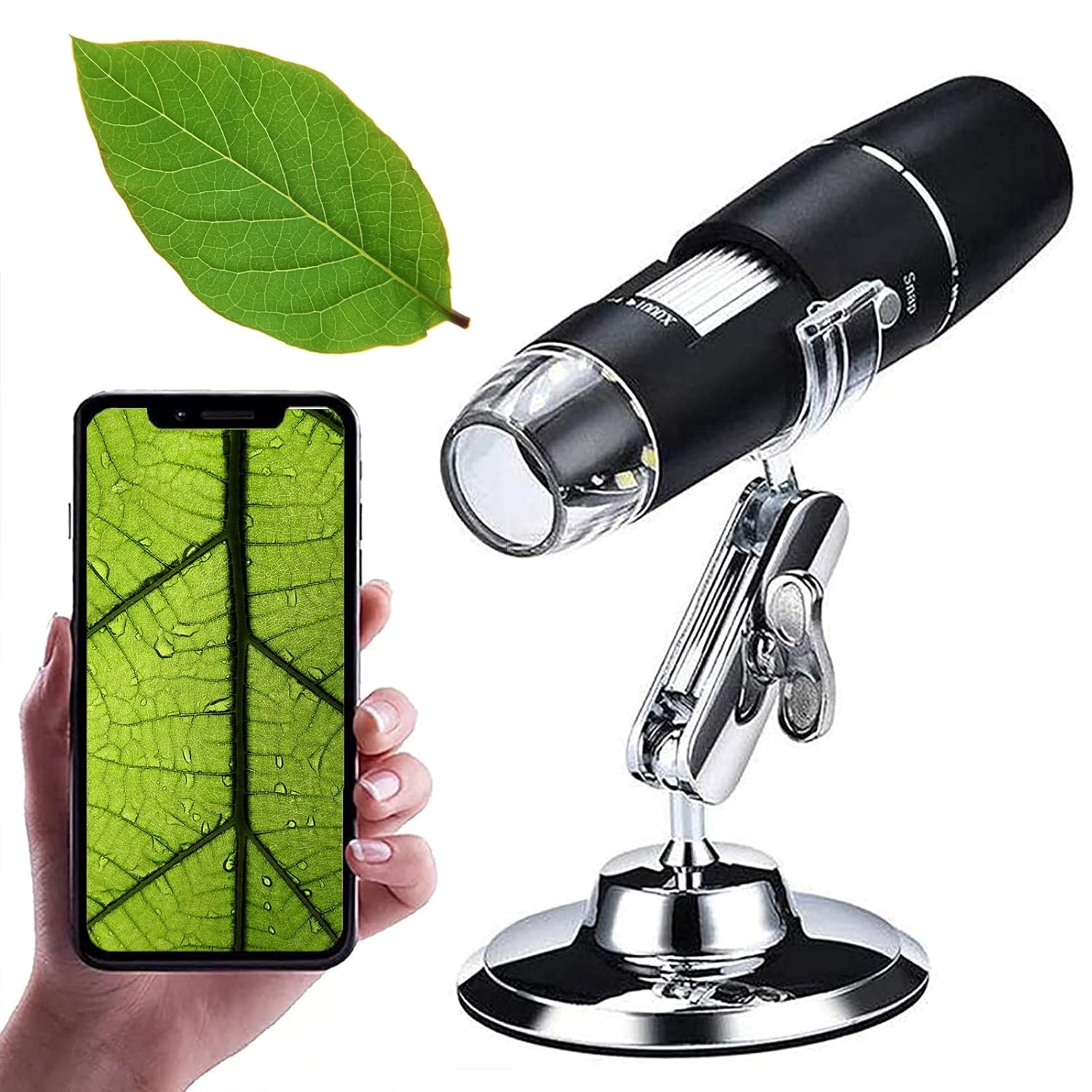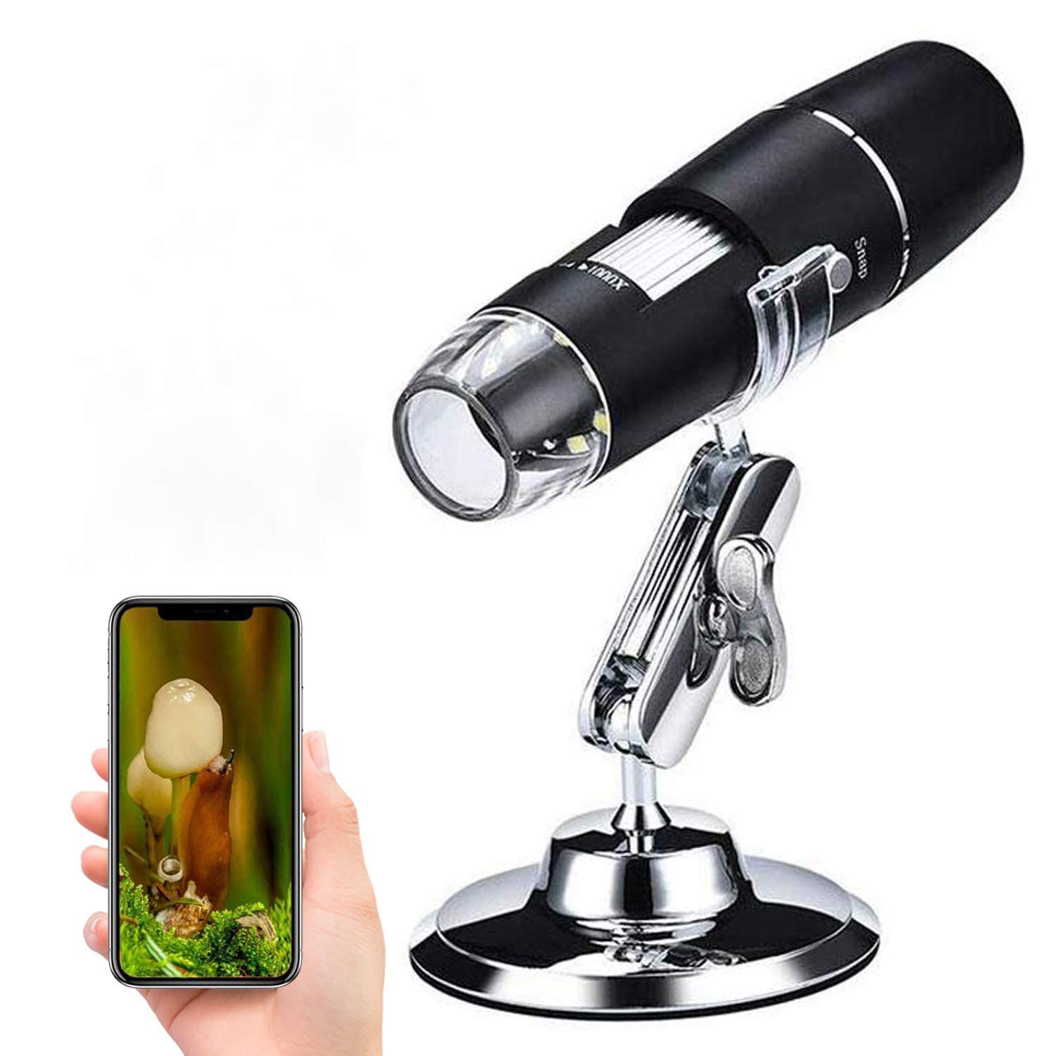 - 50X-1000X MICROSCOPE is EASY TO USE: The Wi-Fi digital microscope is able to connect to smartphones/tablet via Wi-Fi. No cable required and can be used in a handheld mode or adjustable-height stand. Flexible metal tripod offers an optimal and comfortable observation experience for you. It works perfectly with IOS, Android, Windows and Mac OS system.